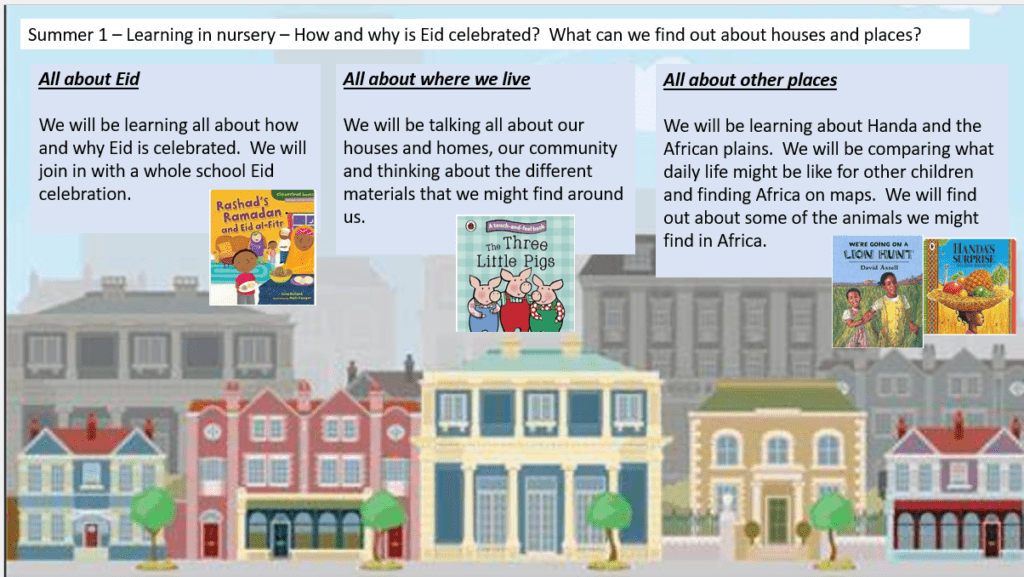 We will be learning all about different kinds of houses and homes. We will be learning the story of the ‘Three Little Pigs’ and the children will be retelling this lovely traditional tale. We will also be looking at how our environment is different to the ones that we will see when exploring the stories of ‘Handa’s Surprise’ and ‘We’re going on a lion hunt’.