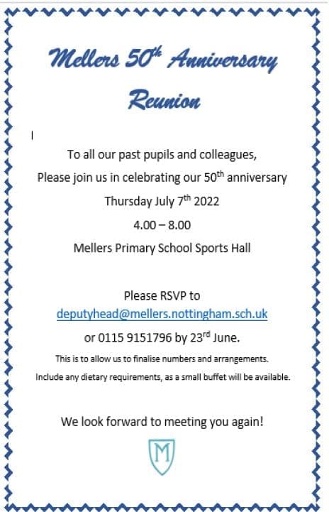 On 1st November 2021 we started our year of celebrations with an assembly to mark the opening of our wonderful school. Throughout the year there will be concerts, reunions, sports events, family events, art installations and exhibitions. If you have photos, memories, reports, books, anything that you’d like to share, and if you are interested in attending the reunion, please email Mrs Patel on: deputyhead@mellers.nottingham.sch.uk